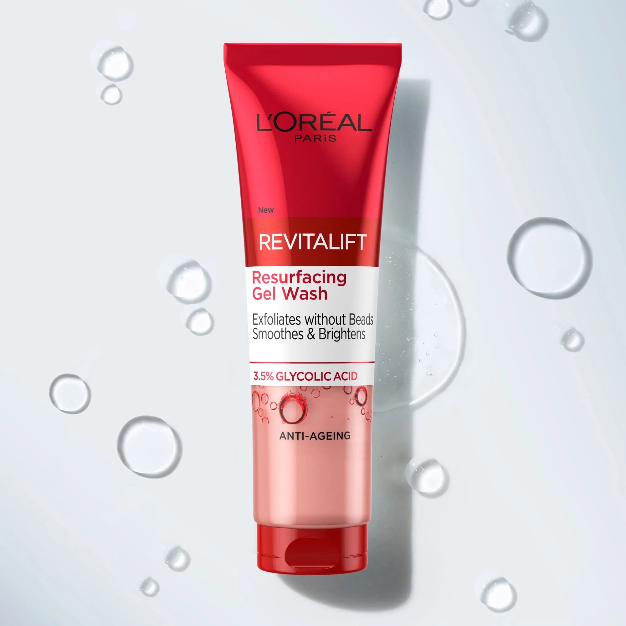 L'Oreal Paris Glycolic Resurfacing Gel Wash cleanser exfoliates without beads, to visibly smooth & brighten skin. Exfoliates, smoothes and brightens skin. Formulated with 3.5% Glycolic Acid, the L'Oreal Paris Glycolic Resurfacing Gel Wash cleanser exfoliates without beads to visibly smooth & brighten skin. Exfoliates, smoothes and brightens skin.