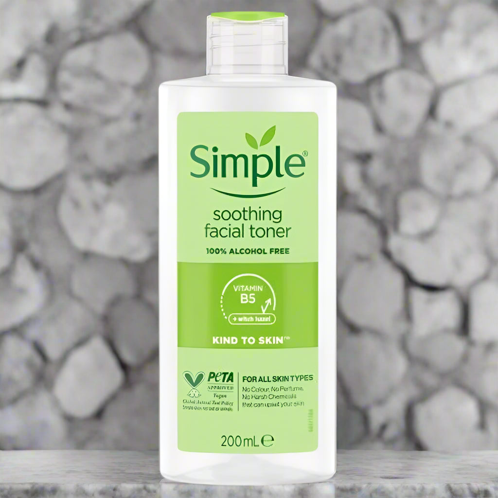 Simple Kind to Skin Soothing Facial Toner 200ml is formulated to provide balance and hydration to your skin. Its soothing properties help to achieve radiant, calm, and healthy skin. It is designed for all types of skin including sensitive skin.